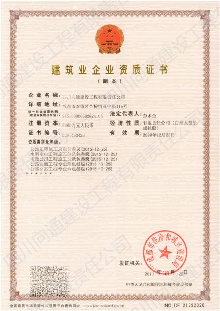 四川向通建設(shè)工程有限責(zé)任公司 四川向通建設(shè)工程有限責(zé)任公司成立于2007年,注冊資本金5060萬元,是一家專業(yè)從事瀝青混合料生產(chǎn)、專業(yè)分包以及市政道路、公路、路基工程專業(yè)施工建設(shè)的企業(yè)。公司注冊地址及生產(chǎn)廠區(qū)位于成都市雙流區(qū)金橋鎮(zhèn)茂生街115號,總占地面積約120畝;辦公地址位于雙流區(qū)海濱城海濱廣場7座11樓。公司生產(chǎn)廠區(qū)(雙流金橋)現(xiàn)有LB-5000型瀝青混合料拌合樓1套,每小時瀝青混合料生產(chǎn)量可達(dá)380噸。此外,根據(jù)項目需要,公司在多地建立4000型拌合站以服務(wù)施工(廣安齊福、達(dá)州、綿陽等),每小時瀝青混合料生產(chǎn)量為320噸。各種國內(nèi)外道路施工機械:攤鋪機、壓路機、銑刨機、灑布車、封層車、吊車、拖車、等70余臺,可滿足各種道路施工需求。公司近100輛保溫運輸車輛均安設(shè)保溫板、加塞保溫棉、覆蓋棉絮和隔熱防水雨篷,有效減少瀝青混合料在運輸過程中的溫度流失進而保證瀝青路面的施工質(zhì)量。 公司目前擁有眾多優(yōu)秀的技術(shù)人才,成熟的市場渠道,良好的企業(yè)聲譽。現(xiàn)有各專業(yè)施工人才共計79人;5支專業(yè)的施工班組可根據(jù)現(xiàn)場的具體情況制定實施性施工方案。今后公司將竭誠為各界客戶提供出色的產(chǎn)品和服務(wù)及具有競爭性的價格和具有創(chuàng)新精神的高效解決方案。 公司曾經(jīng)榮獲:新津鄧雙段被新津縣政府評為“優(yōu)良工程”;雙流宗申大道被雙流縣政府評為“優(yōu)良工程”;成都后花園被成都市政府評為“重合同守信譽單位”;被三一重工評為“有遠(yuǎn)見單位”。并在2018年1月被中國五冶集團評為“優(yōu)秀供方”;同年3月被四川交投評為2017年度“優(yōu)秀合作單位”的榮譽。榮譽的背后是我們公司所有員工堅持不懈的努力。 作為現(xiàn)代化的企業(yè),公司將以技術(shù)為切入點,以信譽為支撐點,以市場為著眼點,促進管理創(chuàng)新和技術(shù)創(chuàng)新。因此我公司能在短時間內(nèi)迅速發(fā)展成為一家擁有各類中大型施工機械設(shè)備的公司。在今后的工作中我們將借用現(xiàn)代電子信息溝通的便利為公司的發(fā)展助力,同時將秉承發(fā)揚以往的團結(jié)拼搏精神,推動公司成為“快穩(wěn)型”發(fā)展的企業(yè)。 在未來的發(fā)展過程中,四川向通始終秉承“以質(zhì)量求生存,以信譽求發(fā)展”的企業(yè)管理理念,以“啟后為先創(chuàng)佳績,爭做路建行業(yè)標(biāo)”的企業(yè)宗旨與建設(shè)單位建立合作關(guān)系,創(chuàng)造更加輝煌燦爛的明天! 四 川 向 通 建 設(shè)